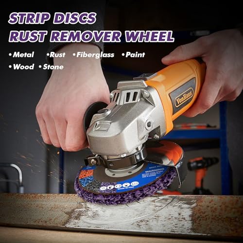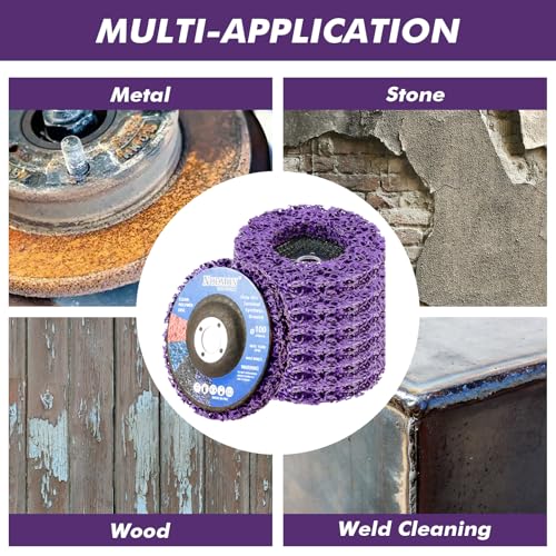 About this item Superior Strip Discs: UltraOutlet 4″ x 5/8″ stripping discs, built with advanced abrasive technology, efficiently remove rust, paint, and oxidation, ensuring surfaces are left smooth and ready for further work. Perfect for tasks such as weld grinding, oil pipe deburring, ceramic polishing, paint and rust removal. Multi-Purpose Use: Designed for both professionals and DIY enthusiasts, these stripping wheels are ideal for various surfaces, including metal, wood, and fiberglass. From paint stripping to surface prep, our sanding discs offer top-tier performance. They can polish materials like steel, plastic, fiber products, stone, and concrete, making them versatile for industrial use and home improvement projects. Built to Last: Featuring premium silicon carbide grains, UltraOutlet paint stripping discs offer exceptional durability and resistance to wear. The non-woven fiber base, bonded with high-temperature adhesive, ensures the discs maintain their strength and performance even under challenging conditions. Compatible with Angle Grinders: Each strip disc rust remover measures 4 inches in diameter, 3/5 inches thick, with a 5/8-inch hole, and can operate at speeds up to 15,200 RPM. Suitable for all standard 4-inch angle grinders but not for use with Wagner Paint Eater or drills. Safe and Clean Operation: The strip discs’ open structure minimizes heat build-up and reduces dust, promoting a safer and cleaner workspace. Get professional-level results with less time and effort.