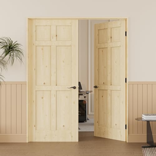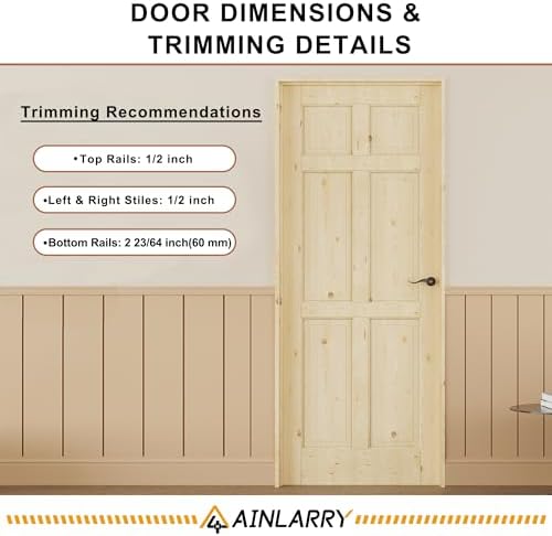 About this item 【Safe Natural Pine Wood, Ready to Stain】The AINLARRY Solid Core Pine Wood Door combines natural beauty and eco-friendliness, crafted from high-quality solid knotty pine wood sourced from sustainably managed forests. This door is free from harmful chemicals, ensuring a healthy indoor environment. Its finely treated surface allows for easy staining, enabling personalized customization to match various decorative styles. 【Product Size】Door Panel size: 2 x 24″(W) x 80″(H), thickness: 1.38”. Fit Rought Door Opening (Opening without Jamb) 50″(W) x 82.5″(H); Fit Opening with Jamb 48 1/4″(W) x 80 1/2″(H) . Please note that only one pre-assembled panel w/o pre-drilled holes, handles and hinges. 【Premium Solid Core】Compared to other hollow core material or low end wood door, our interior door slab is made of solid natural knotty pine wood, which is moisture resistant, soundproof, durable, sturdy, not easy to crack and deform, have good support if you install hardware. 【Widely Used】This door design blend with various home decor styles, making them perfect for pantry room, storage room, laundry room, closet, living room and and other interior doors. The classic design enhances the aesthetic appeal of any room in your home. 【Replacement】 When you receive any broken package, and if you have any questions about the installation and specifications, please feel free to contact us, we will send you a replacement as soon as possible.