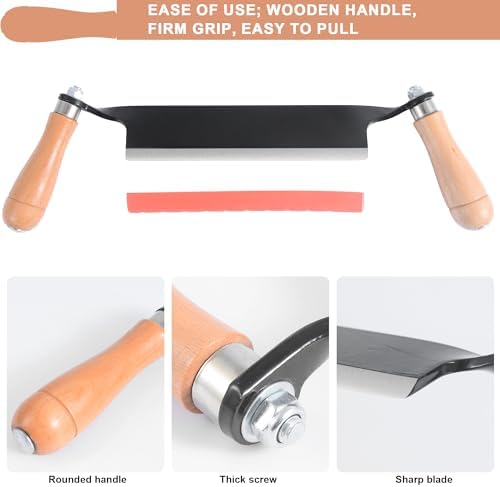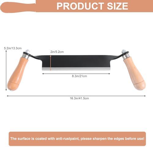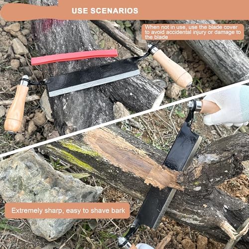 About this item Versatile Draw Knife: This 8-inch draw knife debarking tool is an essential woodworking tool designed for precision in bark removal, making it the perfect partner for log peeling and wood shavings. Its wide blade allows for rapid and efficient tree bark removal, ideal for both beginners and seasoned woodworkers Optimized Design: Featuring a 30° inclined handle, our drawknife ensures optimal control and ergonomics during your woodworking projects. This thoughtful design reduces hand fatigue and provides a comfortable grip, making it perfect for extended use while crafting beautiful pieces from logs High-Quality Materials: Crafted from premium-grade steel, our draw knife woodworking tool boasts exceptional durability and resilience. The blade is designed to maintain its sharpness over time, making it a reliable tool that stands the test of time, ensuring you get the best performance for your bark removal tasks Multi-Purpose Functionality: More than just a debarking tool, this versatile tool doubles as a skinning knife and can be used as a spoke shave for woodworking. Whether you’re shaping furniture, creating rustic decor, or preparing logs for projects, our draw knife is your go-to hand tool for all wood-working applications DIY and sharper:The Curved Draw Knife is perfect for woodworkers including turners, wood framers, carvers, and furniture makers. It enables both amateur and professional woodworkers to accomplish more in woodworking DIY. Additionally, if you want to use the squeegee more quickly, sharpening it will make it sharper for you. Always use it while wearing gloves