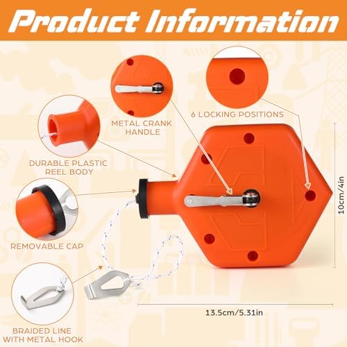 | Feature | Versatile Applications: these chalk lines are suitable for a variety of tasks, including framing, tiling, and landscaping; Their versatility allows users to achieve straight lines and accurate measurements in different projects; These orange chalk reels are ideal for marking on a variety of surfaces, including wood, concrete, and drywall, making them a versatile tool for professionals and DIY enthusiasts seeking accuracy and reliability |