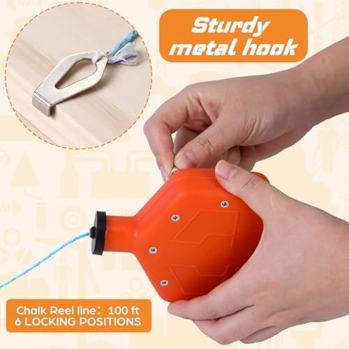 About this item Packing List: the package includes 2 orange chalk lines tools, providing a good value for both DIY enthusiasts and professionals; This dual offering allows users to have a backup tool on hand or share one with a colleague; Having two tools ensures that you are always prepared for any project, whether it’s a small home repair or a large construction job, construction or carpentry toolbox(does not come with chalk, that is sold separately) Dimensions: this chalk line reel features a 100-foot line length, allowing for extended reach for larger jobs without frequent repositioning, helping you improve your basic work efficiency Durable Material: constructed from PP (polypropylene), these chalk lines are designed to withstand the rigors of various working conditions; The durability of the material ensures that the tools can endure drops and rough handling, making them suitable for both indoor and outdoor applications; This resilience means you can rely on them for repeated use without worrying about wear and tear Compact and Portable: each chalk box measures about 4.6 x 4 inches, making it compact enough to fit in your toolbox or pocket; This size is ideal for both storage and handling, allowing for easy maneuverability during use; The dimensions strike a balance between usability and portability, ensuring that you can tackle projects without the tool becoming cumbersome; This portability is particularly beneficial for professionals who need to move frequently between job sites Versatile Applications: these chalk lines are suitable for a variety of tasks, including framing, tiling, and landscaping; Their versatility allows users to achieve straight lines and accurate measurements in different projects; These orange chalk reels are ideal for marking on a variety of surfaces, including wood, concrete, and drywall, making them a versatile tool for professionals and DIY enthusiasts seeking accuracy and reliability