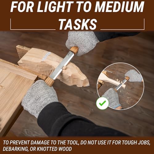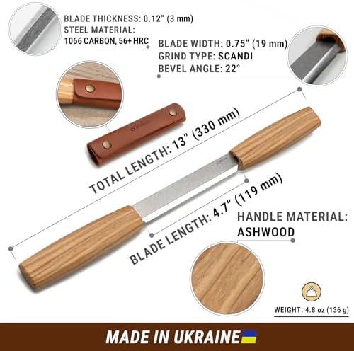 About this item Draw Knife Functions: the splitting knife is a wood carving tool that simplifies the drawing and shaping of wood by removing shavings or larger chunks of excessive wood. Wood Splitter Razor Sharp: the blade of the roughing knife is made of high-carbon steel and is hardened to proper firmness, sharpened and polished so you can use a drawing knife right out of the box. Draw Knife Cutting Edge: very sharp, allows you to cut softwood & hardwood, durable enough to cut hard and soft woods. NOTE! The draw knife is designed to work with wood without bark or knots! Wood Splitter Ergonomic Handles: are made of hardwood oak and finished with natural linseed oil. Their ergonomic design allows having a long period of work without hand fatigue. Draw Knife from Europe: everything made by BeaverCraft gives European quality brought by producing effort from Ukraine.