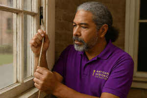 Artisan Historic Contracting specializes in historic window cord and chain replacement, ensuring your vintage sash windows operate smoothly while preserving their original charm. Our master craftspeople carefully remove worn or broken cords and chains, replacing them with durable, historically accurate materials. Whether your home features double-hung windows from the Victorian, Colonial, or Craftsman era, our team restores functionality without compromising authenticity. We serve preservationists, homeowners, and restoration professionals nationwide with unmatched attention to detail and respect for architectural heritage.