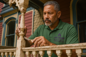 Artisan Historic Contracting specializes in the meticulous restoration of architectural elements such as balusters, railings, and brackets. With a legacy rooted in craftsmanship and historical preservation, our team revives original wood, iron, and stone features using traditional techniques and modern conservation standards. Whether restoring Victorian porches, Colonial staircases, or Gothic brackets, we ensure every detail reflects the building’s original character while meeting today’s structural integrity requirements.
