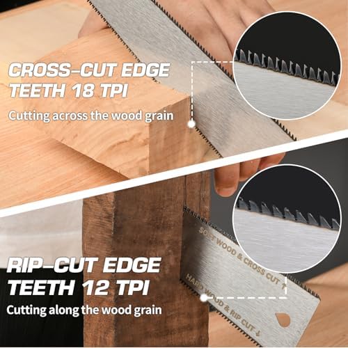 About this item โถ๐๐ข๐ฉ & ๐๐ซ๐จ๐ฌ๐ฌ ๐๐ซ๐๐๐ข๐ฌ๐ ๐๐ฎ๐ญ๐ญ๐ข๐ง๐ : Japanese hand pull saws double edge has 18 TPI crosscut teeth on one side for cross cutting, 12 TPI crosscut teeth on the other side for Rip cutting and help carpenters, wooder to cut various soft and hard wood more accurately and quickly โถ๐