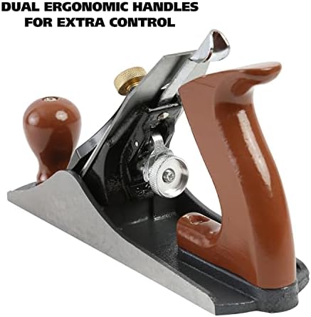 About this item EASY TO USE: Peel through the rough surfaces of wood quickly; The dual ergonomic grips make running the blade over wooden surfaces a breeze; Adjust the blade according to your needs PRECISION CUTTING TOOL: This planer features an alloy steel cutter that shaves your rough wooden surfaces smooth; Great for long lasting use, this steel cutter is easily sharpened when dulled over time ADJUSTABLE BLADE: Our hardened and tempered 2 inch wide cutter blade is used for smoothing the rough surfaces of wood; The blade can be adjusted laterally with the lever; Adjust for depth using the screw ERGONOMIC HANDLES: Guiding the planer over rough or uneven wooden surfaces is easy with the plastic ergonomic handles; Apply pressure across the surface of a wooden plank for a smooth cut DURABLE PLANER: The cast iron body of the planer is accurately machined and polished to give you a long lasting tool; The dual ergonomic plastic handles give you control over the alloy steel cutter