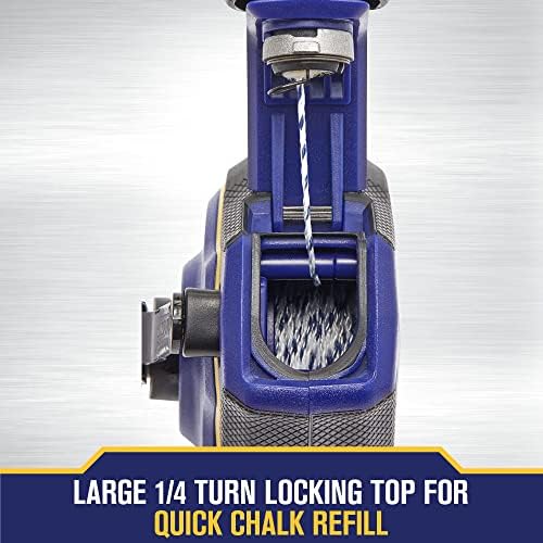 About this item STURDY HI-TENSILE LINE: 100 ft. line resists breakage when in contact with abrasive surfaces SECURE ANCHORING with wide-prong hook FAST CHALK REFILLS: Large 1/4 turn locking top provides increased visibility during refills HIGH-COMFORT DESIGN: Overmold grip and convenient fishing reel-style knob promote low-strain use DURABLE CONSTRUCTION: Lightweight yet sturdy ABS housing withstands jobsite wear and tear QUICK LINE RETRACTION: 6:1 planetary gear ratio enables smooth line retraction when pushing in the clutch hub REDUCED LINE DAMAGE: Innovative spool design helps preserve line and aerate chalk ENHANCED STRENGTH AND TORQUE: Robust steel handle and large center hub add durability
