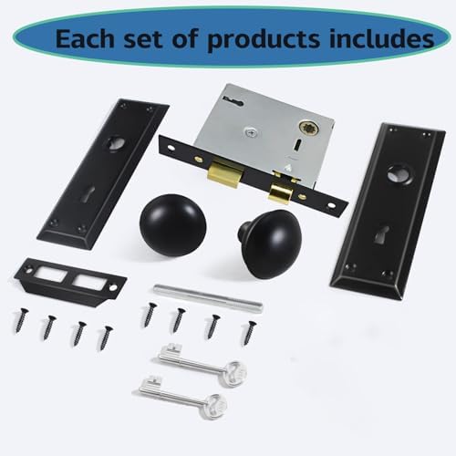 About this item Universal Fit for Old Doors & Multi-Scenario Use:Seamlessly replaces outdated hardware on interior and exterior doors (1-3/8″ to 1-3/4″ thick). Ideal for bedroom privacy, humid bathrooms, living areas, and offices — perfect old door replacement with refined security Timeless Matte Black Vintage Design:Elevate your decor with classic matte black door knobs that resist tarnishing. Features skeleton key operation and subtle metallic accents, complementing farmhouse, traditional, or modern vintage door knobs styles DIY Mortise Lock Set Installation in Minutes:No professional needed! Complete kit includes mortise latch, strike plate, screws, and skeleton keys. Follow our step-by-step guide to upgrade old door knob replacement effortlessly — achieve pro results with pride Built to Last Heavy-Duty Mortise Door Lock:Crafted from zinc alloy and precision mechanisms, this mortise lock set withstands 100,000+ test cycles. Ensures smooth skeleton key operation, zero jamming, and reliability for interior doors and historic homes Lifetime Support & Satisfaction Guarantee:Contact us 24/7 for door lock installation help or compatibility checks. Backed by rapid response promise — invest confidently in your vintage door hardware upgrade